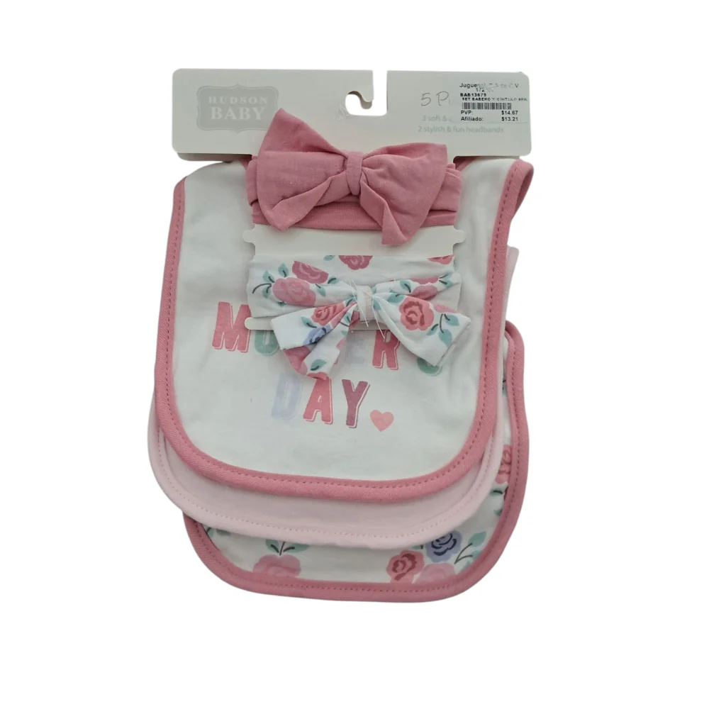 set de 2 baberos con 2 cintillos para niña.