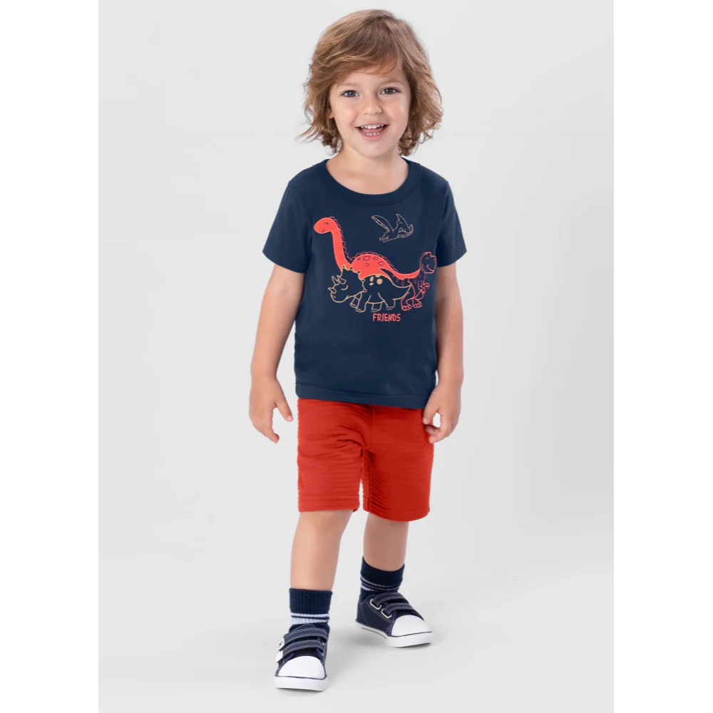 Dale al armario de tu niño un lindo conjunto de 2 piezas, es ligero y transpirable para que esté en absoluta comodidad durante todo el día, incluye una camiseta con cuello redondo, mangas cortas, diseño estampado, short con cintura elástica, con diseño sólido, para un look completo.