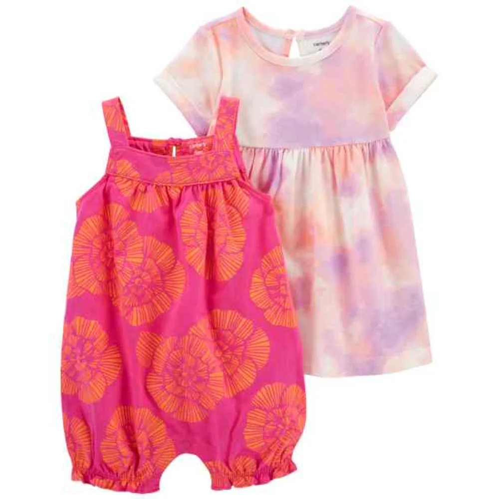 Abastécete de dos lindas piezas, incluido un vestido de manga corta y un mono sin mangas.