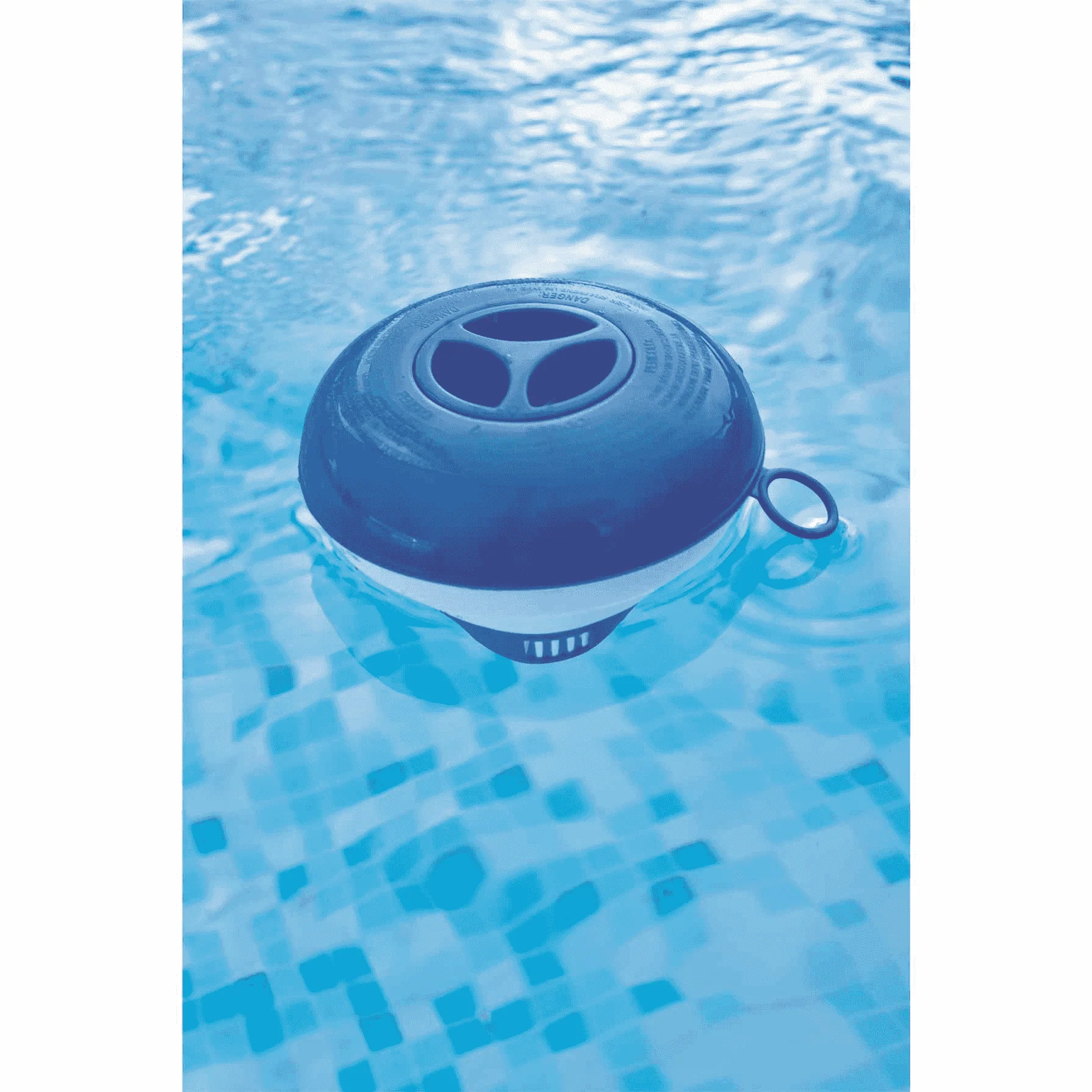 Dispensador cloro flotante ajustable mediano para piscinas. Diámetro 12,7 cm. Ajustable para controlar la liberación de cloro. ¡Mantén tu piscina siempre limpia! ADVERTENCIA: No recomendable para menores de 3 años, ya que contiene piezas pequeñas que podrían provocar asfixia en caso de ser ingeridas por el niño/a.