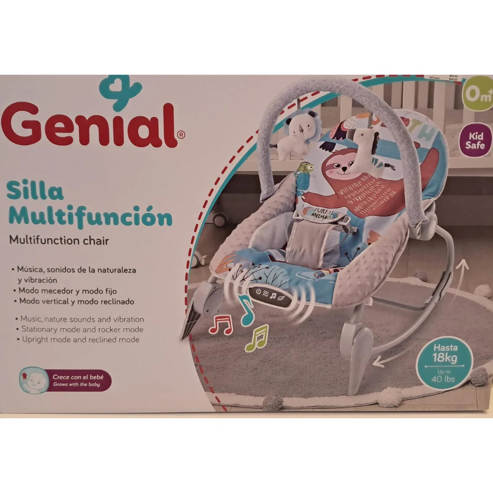 0 meses en adelante, hipoalergénico, transpirable, diferentes formas y colores, con movimiento vibratorio para calmar, modo mecedor y modo fijo, modo vertical y modo reclinado, transpirable, libre de tóxicos, soporta hasta 40lbs, con sonidos de naturaleza