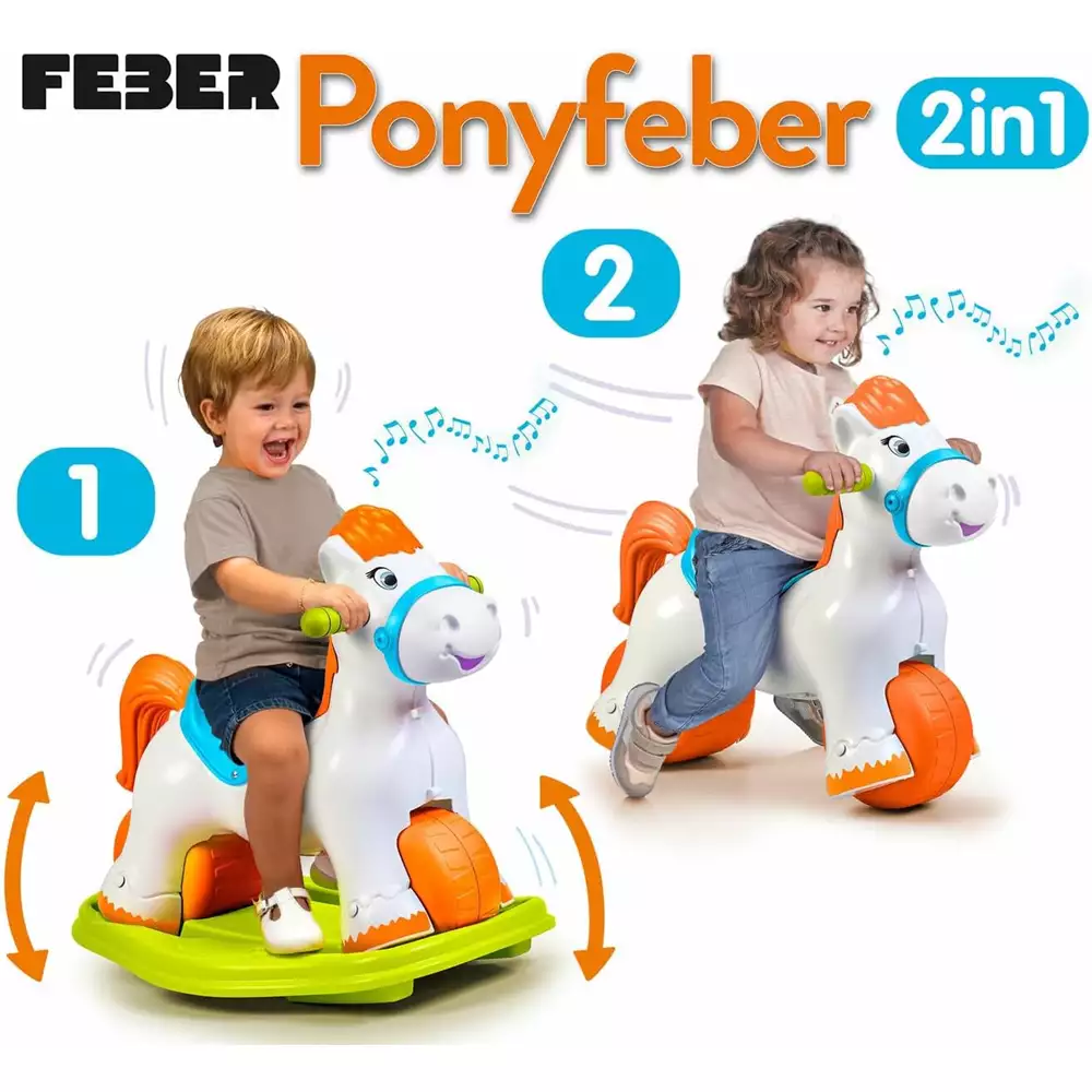 Descubre el Ponyfeber 2 en 1 de Feber, un juguete encantador que une correpasillos y balancín. Con estructura estable, grandes ruedas y sonidos de trote y relincho, acompaña el desarrollo del peque con diversión segura.