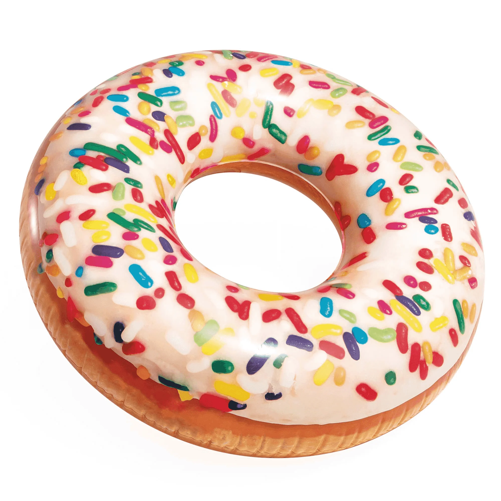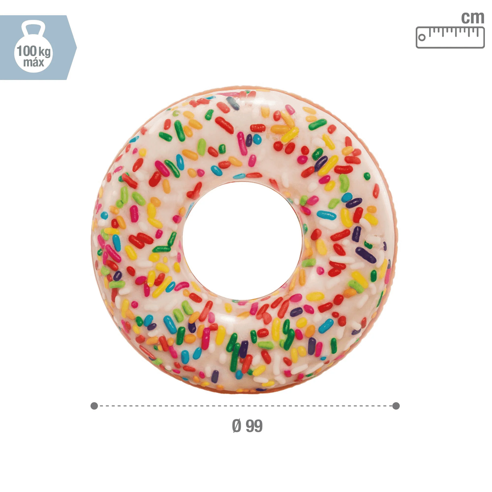 ¡Dale un toque dulce y divertido a tus días de verano con la Rueda Hinchable Donut Blanco de Intex! Con un diseño fotorrealista que imita un delicioso donut glaseado con virutas de colores, este flotador es perfecto para niños y adultos que buscan destacar en la piscina o la playa.