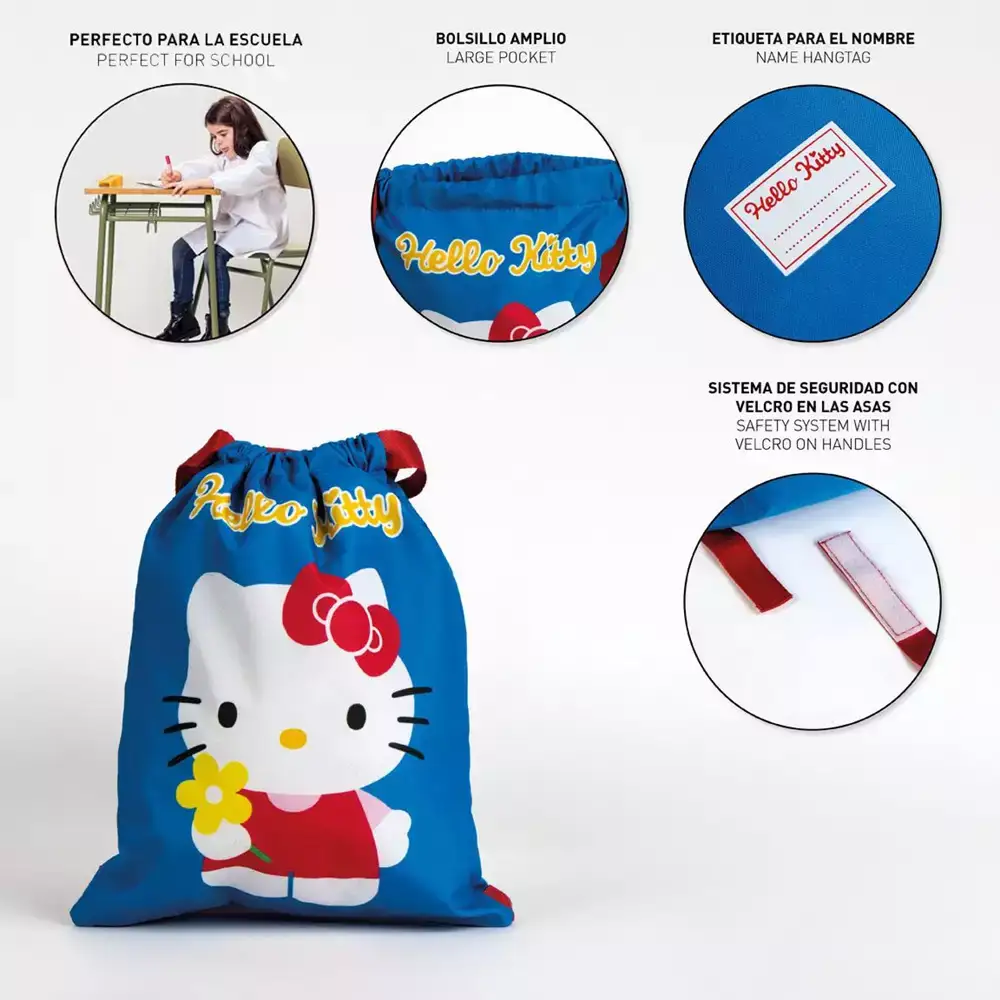 Este saquito no solo es práctico, sino que también añade un toque de diversión y estilo al día a día escolar. Perfecto para llevar la merienda, ropa de cambio o material escolar ligero, siempre acompañado de Hello Kitty.