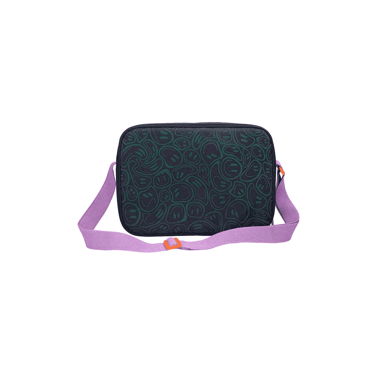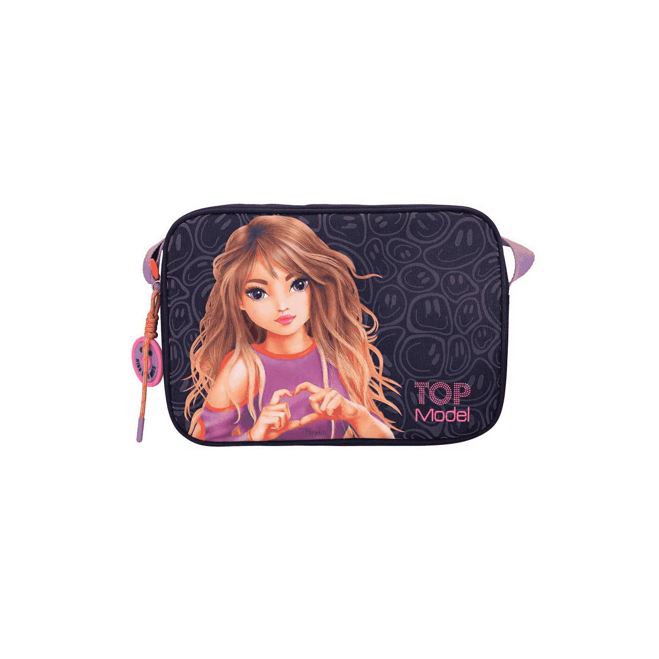 El bolso bandolera azul oscuro de TOPModel lleva como motivo principal de la cara delantera una modelo a tamaño grande sobre fondo de emojis sonrientes que brillan de formas distintas según varía la luz (material reflectante). Además, la mochila está rematada con llamativos detalles de colores vibrantes. Con bandolera ajustable, bolsillo interior con cremallera, cartera extraíble y un gran colgante redondo HAPPY en la cremallera. Material: poliéster 100 por 100.