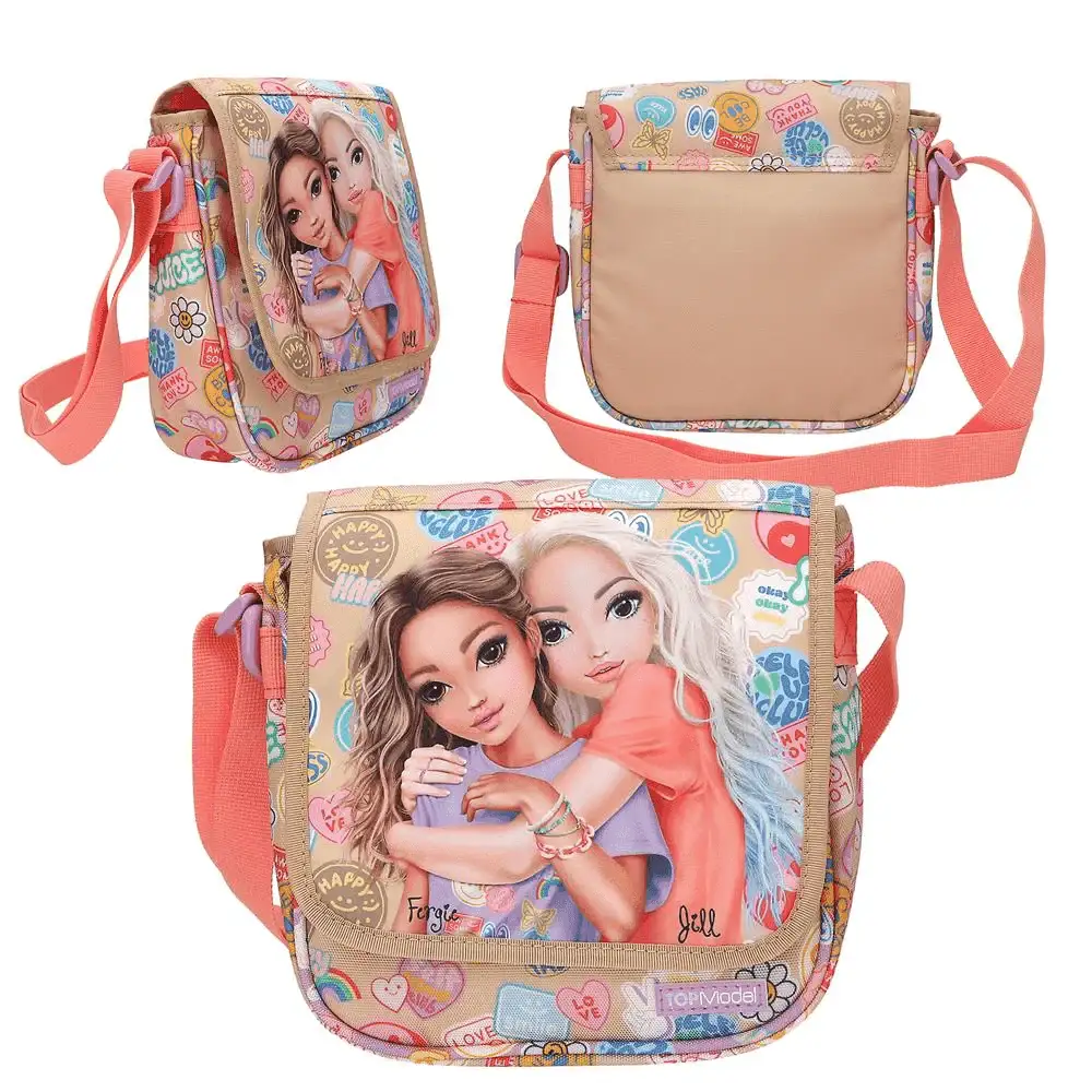 Descripción del producto: Batch-Boom! Este bolso bandolera de TOPModel en maravillosos tonos beige y coral lleva la cara delantera decorada con dos estilosas modelos rodeadas de parches en imitación de chulísimas pegatinas coloridas, que también adorlos laterales. La bandolera es ajustable. Práctico: la anilla para llevar colgantes. Material: poliéster 100 por 100. Dimensiones: 6,5x20x21 cm aprox.