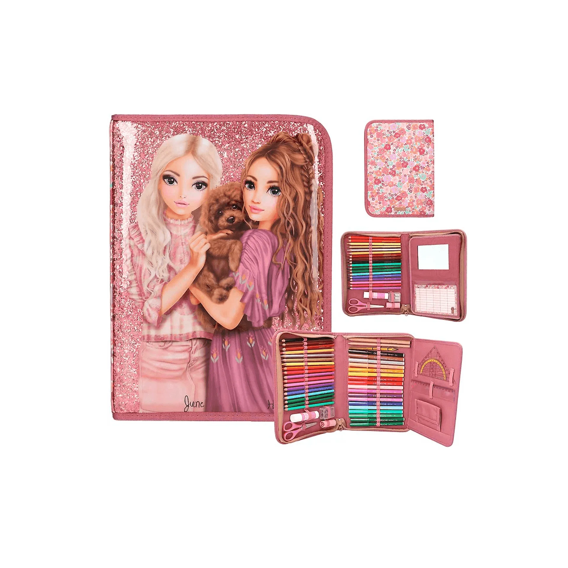 El TOPModel Estuche Grande Flowers es perfecto para las pequeñas artistas que buscan un estuche completo y estiloso. Con un diseño floral encantador y lleno de color, este estuche viene completamente equipado con 18 lápices de colores, 18 rotuladores, dos lápices, goma, sacapuntas, pegamento en barra, regla y tijeras. Todo lo que se necesita para el día a día escolar.